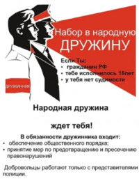 Администрация Чебургольского сельского поселения объявляет открытый набор в добровольную народную дружину, которая будет действовать на территории Чебургольского сельского поселения.
